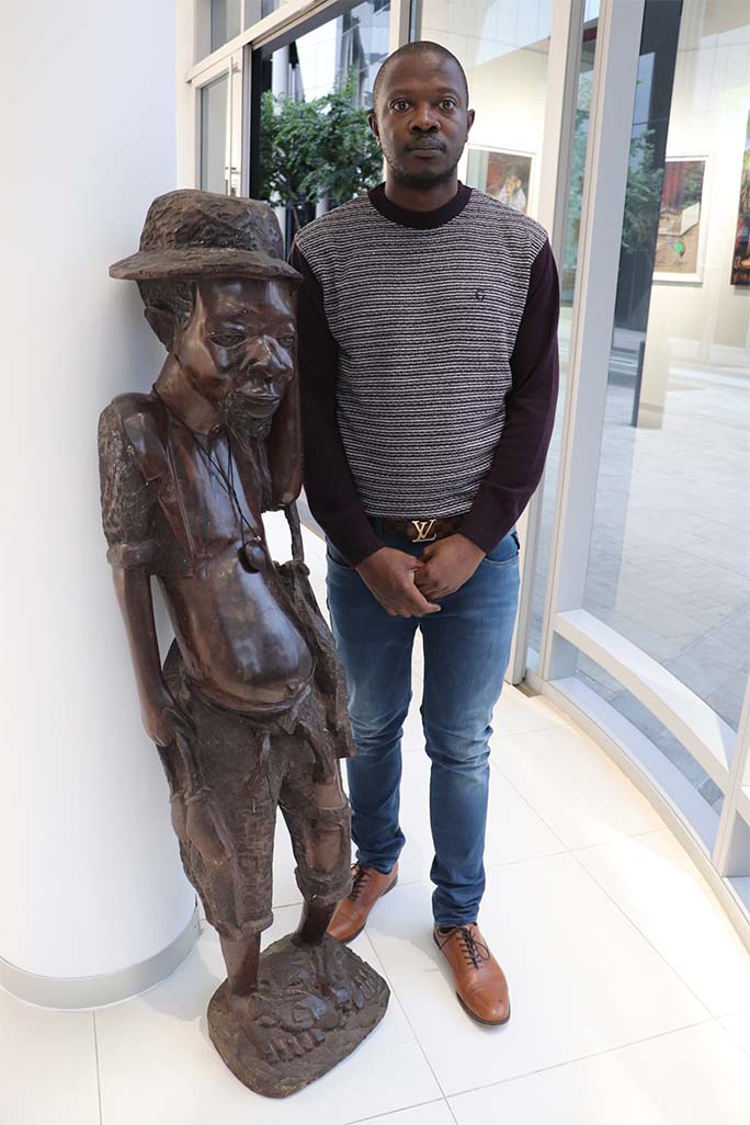 George Mulaudzi sold Big G sweets to Khat users and playing cards to gamblers. He simultaneously merchandised empty soft drink bottles in Owino, Kisenyi, Bus za’baganda and Kiseka markets between 1990 and 1993. 1994 to 1997 merchandising clothes would take its course. From 1998 to 1999, around the same time gambling took its toll on him and he reverted back to painting as a way to cope with everything that was happening around him, solidifying his love for art.
